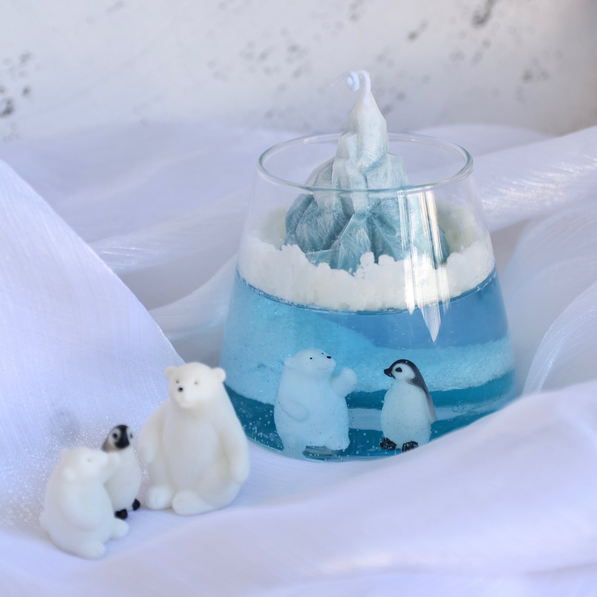 企鵝北極熊雪山香薰蠟燭由4種蠟材拼合而成,利用不同蠟材呈現的效果,造出可愛又實用的蠟燭。